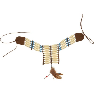 Pro indiány jsou typické doplňky z korálků a peří. Pokud tedy chceš oživit svůj kostým, pak by ti neměl chybět tento náhrdelník. Indiánský náhrdelník z korálků s peřím.