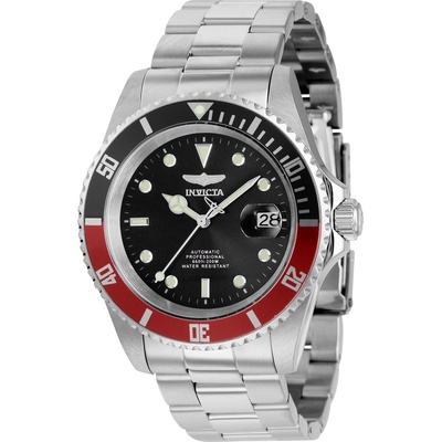 Invicta 9403 ZÁKLADNÍ PARAMETRY: Určení: Pánské Pouzdro:Z ušlechtilé oceli Řemínek:Z ušlechtilé oceli Sklo:Tvrzené minerální sklo Ciferník:Černý Vodotěsnost:20 ATM šířka ciferníku: 40 mm výška ciferníku: 14 mm FUNKCE: Viz obrázek modelu Šířka pásku: 20 mm Čas:...