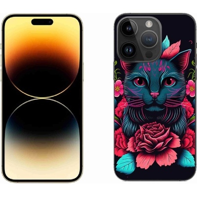 Kočičí pouzdro na iPhone 14 Pro Max - květiny a kočka poskytuje všechny výhody gelových krytů, a to v zajímavém designu. - Účinně chrání strany i záda telefonu. - Snadno se...