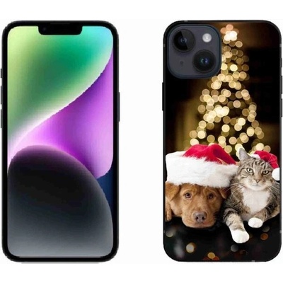 Skvělá cena, dokonalá ochrana Vašeho telefonu proti poškrábání. Gelový kryt mmCase na mobil iPhone 14 - vánoční pes a kočka