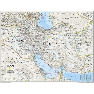 Nástěnná politická mapa Íránu. Mapa zahrnuje: - administrativní rozdělení - národní parky, archeologická naleziště - silniční, dálniční a železniční síť - trasy lodní dopravy