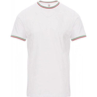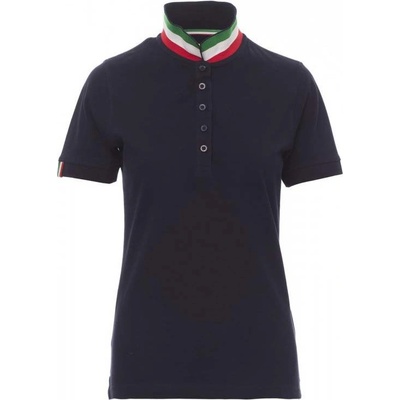 Dámská vyštíhlená polokošile s krátkým rukávem s 5 barevně sladěnými perleťovými knoflíky, barevně sladěný límeček s kontrastním rubem v barvách italské vlajky, který je vidět...