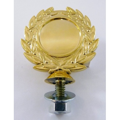 E411-zlatá. Kovová poklice průměr 8 cm. Poklici Vám umístíme na vybraný pohár stejného průměru. Na poklici si objednejte nosič emblému popř.figurku z naší nabídky. -