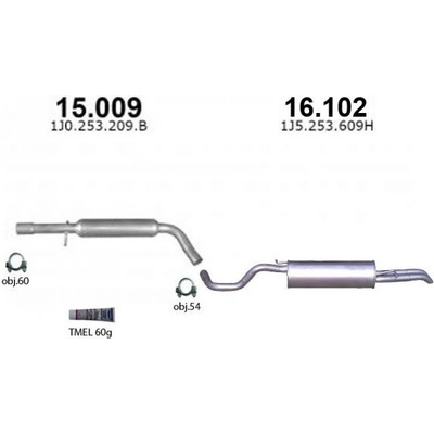 Výfuk ŠKODA OCTAVIA 1.8i-20V, 2.0i / TOLEDO / BORA / GOLF IV, montážní sada/komplet Škoda Octavia 1.8i-20V (r.v.10/96-04/99) a 2.0i (r.v. 05/99-05/07) Seat Toledo 1.8i...