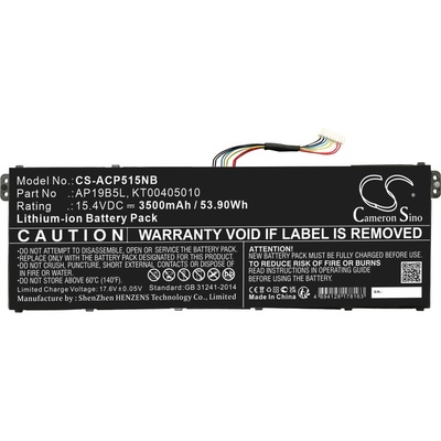 Baterie Cameron Sino CS-ACP515NB EAN: 4894128178163 Napětí: 15.40 V Typ: Li-Polymer Kapacita: 3500 mAh Energie: 53.90 Wh Výška: 261 mm Šířka: 88 mm Hloubka: 6 mm Hmotnost bez...