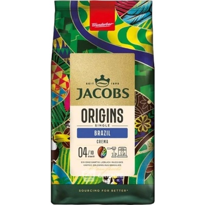 Jacobs Origins Brazil Crema zrnková káva nabízí vyváženou chuť s tóny karamelu, oříšků a obilnin.