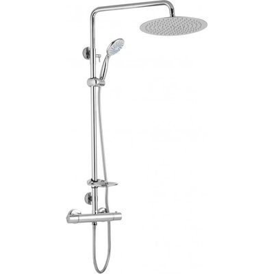 Kompletní SPRCHOVÝ SET S TERMOSTATICKOU BATERIÍNerezová konstrukce s povrchovou úpravou chrom. Kovové upínací prvky, nerezová hlavová sprcha, to vše je zárukou vysoké kvality.Termostatická baterie s horním vývodem. Baterie nejvyšší kvality s termostatickou kartuší od...