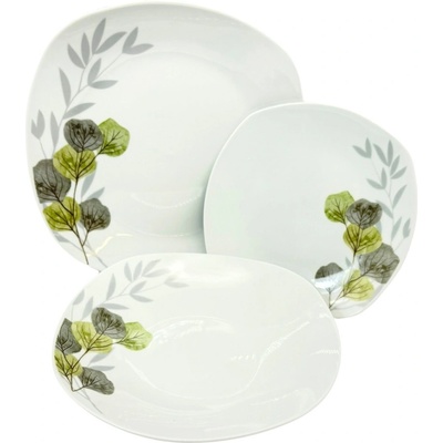 Jídelní porcelánová souprava 18 kusů kulatých talířů. Barva bílá, po straně vkusný květinový dekor v zelené a šedé barvě. Užijte si krásné stolování. Souprava obsahuje : 6...
