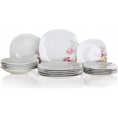 Jídelní set DOLORES 18ks Sada porcelánových talířů DOLORES vás nadchne romantickou květinovou výzdobou. Sada talířů se skládá ze 6 mělkých talířů, 6 hlubokých talířů a 6...
