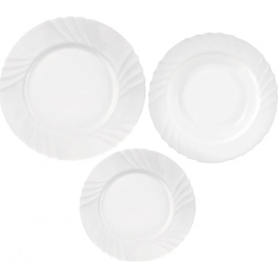 Sada obsahuje: - 6x mělký talíř o průměru 25 cm – ideální pro hlavní jídla, saláty nebo přílohy - 6x hluboký talíř o průměru 23 cm – skvělé pro polévky - 6x dezertní talíř o...