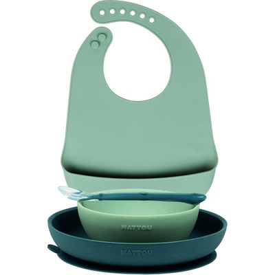 Třídílný jídelní set od Nattou z měkkého silikonu je velmi praktický, snadno uchopitelný a protiskluzový. Set obsahuje talířek a misku s přísavkou a lžičku s měkkým koncem....