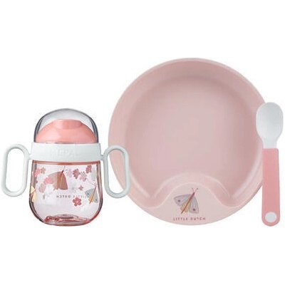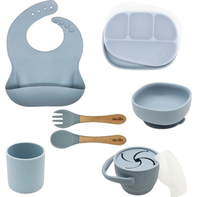 Podrobnosti o produktu: Věk: od 6 měsíců Sada pro učení jídla pro kojence a batolata s hrnečkem na pití, silikonovou miskou, lžičkou a bryndáčkem. Miska s přísavným podstavcem,...