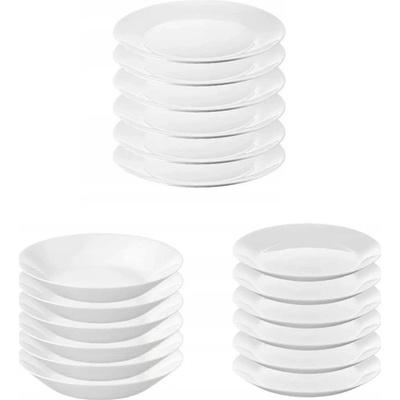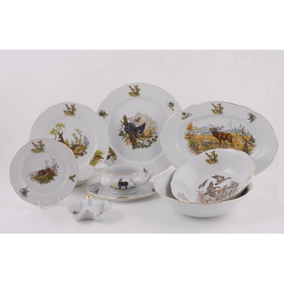 mísa polévková s víkem (2,5 l), omáčník s podstavcem (0,4 l), 18 - dílné talíře (6x hluboký, 6x mělký, 6x dezertní), slánka kombinovaná, (sůl a pepř), mísa kompotová (23 cm),...