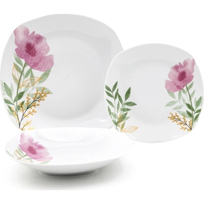 Jídelní porcelánová souprava 18 kusů kulatých talířů. Barva bílá, po straně vkusný květinový dekor v zelené a růžové barvě. Užijte si krásné stolování. Souprava obsahuje :...