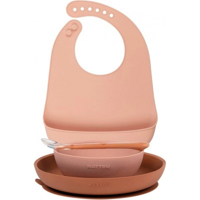 NATTOU Set jídelní silikonový fialovo růžový bez BPA 3 ks