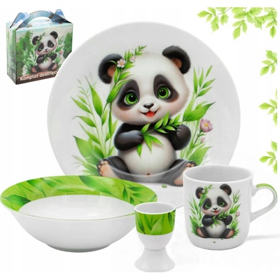 OBĚDOVÝ SET PRO DĚTI 4 EL PANDA HRNEK TALÍŘ MISKA SKLENIČKA NA VEJCEVlastnosti - ▶ Vysoce kvalitní porcelán – odolný, elegantní a zcela bezpečný při styku s potravinami. - ▶...
