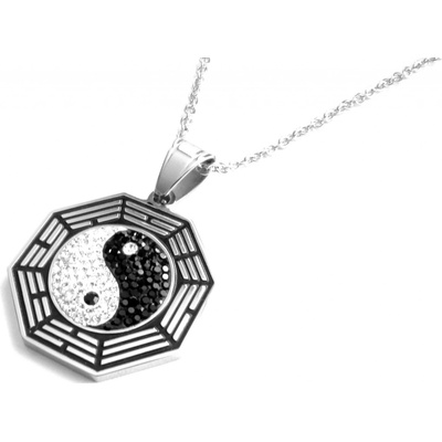 Steel Jewelry Náhrdelník jin jang s krystalky z chirurgické oceli NH111115