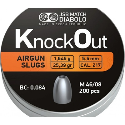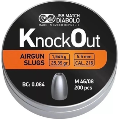 Diabolo JSB KnockOut Slugs .216 5,5 mm (200 ks) jsou těžké střely navržené pro vzduchové zbraně ráže 5,5 mm