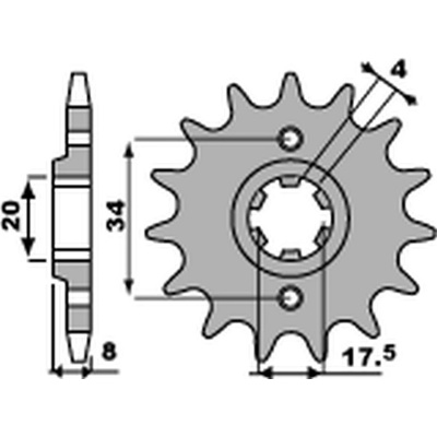 Řetězové kolečko HONDA CRM 125 1990-1999, NSR 125 R 1993-2007, VT 125 C Shadow 1999-2007, XL 125 V Varadero 2001-2013 Materiál Ocel Typ řetězu 520 Počet zubů 14