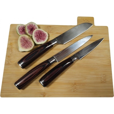 Nerezové čepele jsou odolné vůči korozi, rukojeti vyrobené z lamina. Sada se skládá z: - Santoku, univerzální nůž (č. 719870 ) - Malý, malý univerzální nůž (č. 719873 )