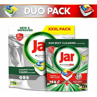 Jar kapsle XXXL platinum do myčky125 ks Kapsle do myčky Jar Platinum Vše v jednom jsou účinné hned při 1. umývaní a dokážou si poradit i s těmi nejodolnějšími nečistotami, aby vaše nádobí zářilo čistotou. Kapsle Jar Platinum mají čisticí sílu, díky které se nemusíte...