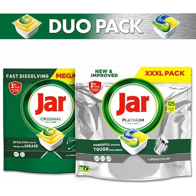 Jar Platinum kapsle lemon 125 ks Kapsle do myčky Jar Platinum Vše v jednom jsou účinné hned při 1. umývaní a dokážou si poradit i s těmi nejodolnějšími nečistotami, aby vaše...