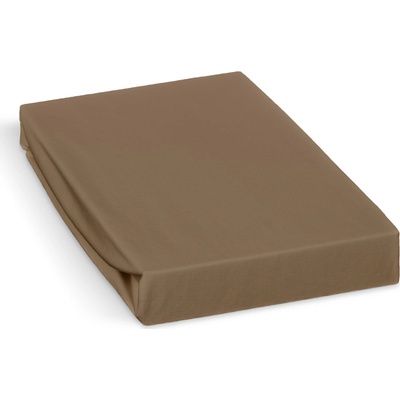 Napínací tmavě béžové žerzejové prostěradlo na matraci o výšce až 22 cm.