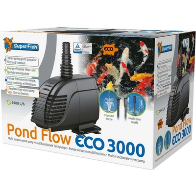 Pond flow ECO 3000 Max. hloubka ponoru: 2,3 m Výstup: 20 / 25 / 32 mm Příkon: 45 W Napětí: 230 V Max. průtok: 2900 l / hod Délka připojovacího kabelu: 10 m...