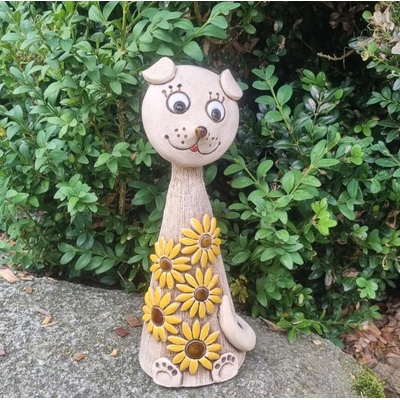 Keramický pes se slunečnicí - dekorace do zahrady - 32 cm