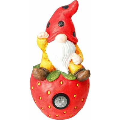 PROGARDEN Zahradní dekorace trpaslík na jahodě 20 x 39 cm solární KO-795250820jaho