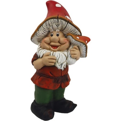 Dekorační trpaslík. Rozměry: 12,4 x 12,3 x 26,6 cm. Materiál: keramika. Barva: červená, oranžová, bílá, zelená. Výrobek není mrazuvzdorný. Není hračka.