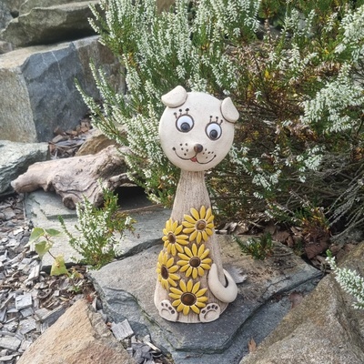 Keramický pes se slunečnicí - dekorace do zahrady - 25 cm