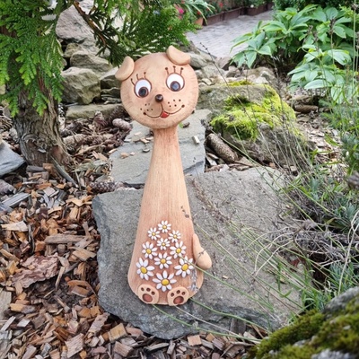 Keramický pes se sedmikráskou terakota - dekorace do zahrady - 30 cm