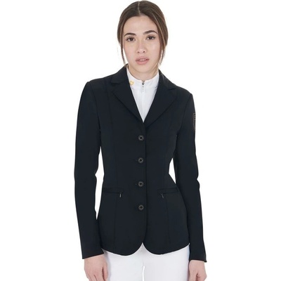 Dámské jezdecké závodní sako s ozdobnými knoflíky.. Fazonový límec s reflexní výpustkou. Výpustkové kapsy. Na zadním díle rozparky. Aplikace "Crystals from Swarovski". ...