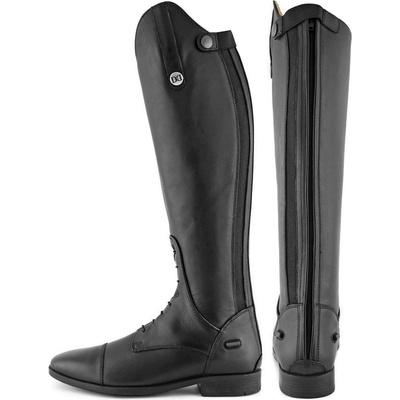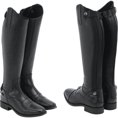 Vysoké jezdecké boty ze syntetického kožené materiálu. Boty mají zapínání na zip s elastickou vsadkou vzadu a elastické tkaničky vpředu, což umožňuje snadné přizpůsobení lýtku....