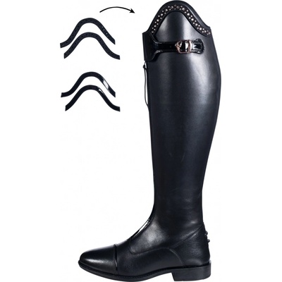 Vysoce kvalitní jezdecké boty vyrobeny z kůže. Stélka z paměťové pěny zajišťuje maximální pohodlí. Opatřeny předním zapínáním na zip, který je jištěn nahoře přezkou v rosegold...