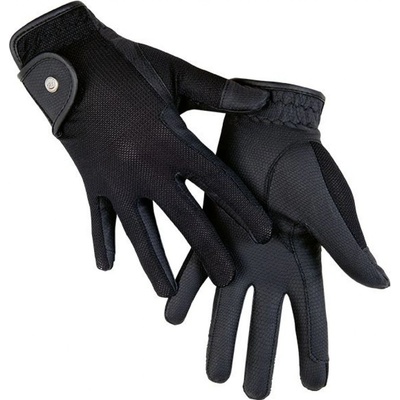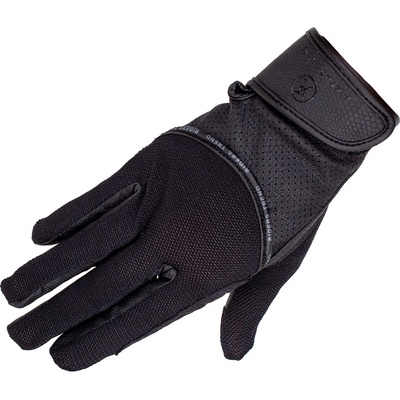 Jezdecké rukavice z kolekce QHP jaro/léto 2025 v černé barvě. Letní rukavice s prodyšnou síťovinou na vrchu ruky. Speciální látka na ukazováčku pro snadné používání...