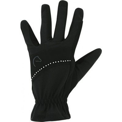 Stylové jezdecké rukavice zdobeny detailem z jemných kamínků. Mají elastickou vložku v oblasti kloubů a perforaci v oblasti prstů. Praktické zapínání na suchý zip zajišťuje...