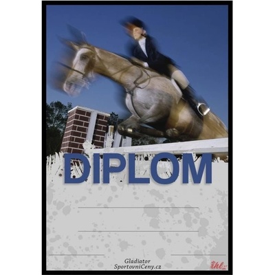 Diplom pre jezdectví o velikosti A4. Pro Sportovní ceny Gladiator vytvořil designér Ondřej Čada. Za příplatek 5 Kč je možné do diplomu vepsat text dle požadavků. Požadovaný...