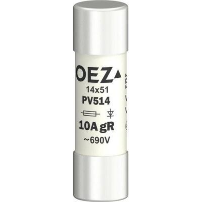 Pojistková vložka OEZ Varius s charakteristikou gR pro jištění polovodičů před přetížením a zkratem. Jmenovitý proud 10A gR, napětí 690 V AC / 700 V DC, rozměry 14x51 mm....