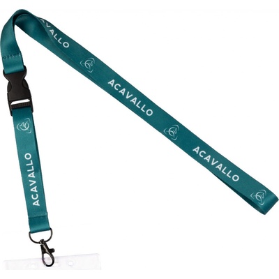 Jmenovka na krk s průhlednou fólií a karabinou. Lze ji využít i jako klíčenku. Zdobená logy a nápisy Acavallo.
