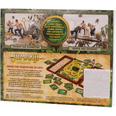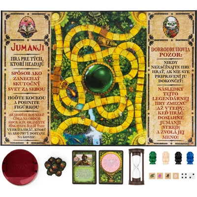 Zábavná společenská desková hra pro ty, kteří chtějí opustit normální svět a zažít velké dobrodružství v divokém světě Jumanji, který je plný nástrah a nebezpečných zvířat.