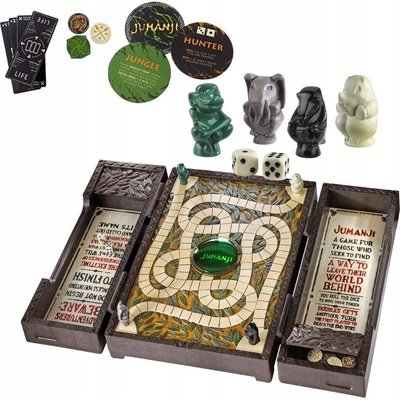 Menší repliky hry Jumanji, kterou znáte z filmu. Hra neslouží jako desková hra, pouze jako replika. Vydává zvuky. K provozu potřebuje 3 baterie LR44, které jsou součástí balení. Rozměr 18 x 25 cm.