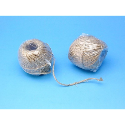 Malé klubíčko jutového provázku, hmotnost 50 g (+- 10%), nosnost 13 kg (+- 10%), průměr motouzu 1,25 mm (+- 10%). Označení výrobce: 500x2 tex Výrobce: Juta Olomouc
