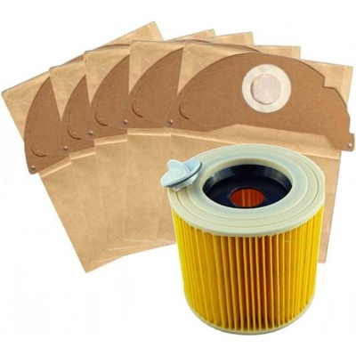 Filtr pro vysavače Kärcher MV 2/ WD 2 a papírové sáčky 1+5ks Sada 5ks papírových sáčků a 1ks filtrační patrony pro vysavače Kärcher je kompatibilní pro značení KARCHER...