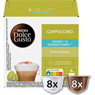 Nescafé Dolce Gusto Cappuccino Skinny Neslazené 16 kapslí přináší autentický italský cappuccino zážitek během několika sekund díky jemné mléčné pěně a výraznému espressu....