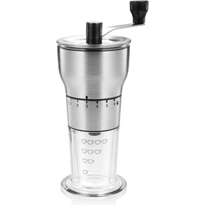 Moderní ruční mlýnek na zrnkovou kávu s prvotřídním keramickým mlecím mechanismem, snadným nastavením hrubosti mleté kávy, odměrkou pro 1, 2, 3 nebo 4 šálky a protiskluzovou úpravou podstavce. 3 roky záruka.