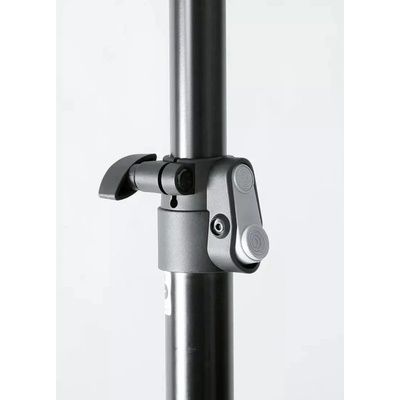 sada 2 ks hliníkových teleskopických stojanů pro reproboxy, minimální výška 127 cm, maximální výška 193 cm, nosnost 50 kg, bezpečnostní pojistka, pogumované nožičky, průměr trubky 35 mm, hmotnost 5.9 kg, barva černá, v ceně nylonový obal