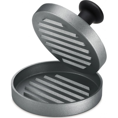 2dílný press na hamburger s non-stick povlakem. Forma pro tvoření hamburgerů, včetně typických drážek. Pro snadné odstranění masa z formy, doporučujeme vnitřek lehce naolejovat, nebo vložit kus pečicího papíru. Rozměry: Průměr: 12 cm