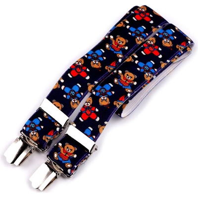 Dětské šle o délce 60 cm a šířce 2,5 cm s různými potisky. Popruhy jsou různě barevné. Natištěné motivy jsou kvalitní, neloupou se ani neodírají. Šle jsou vyrobeny ze 100%...